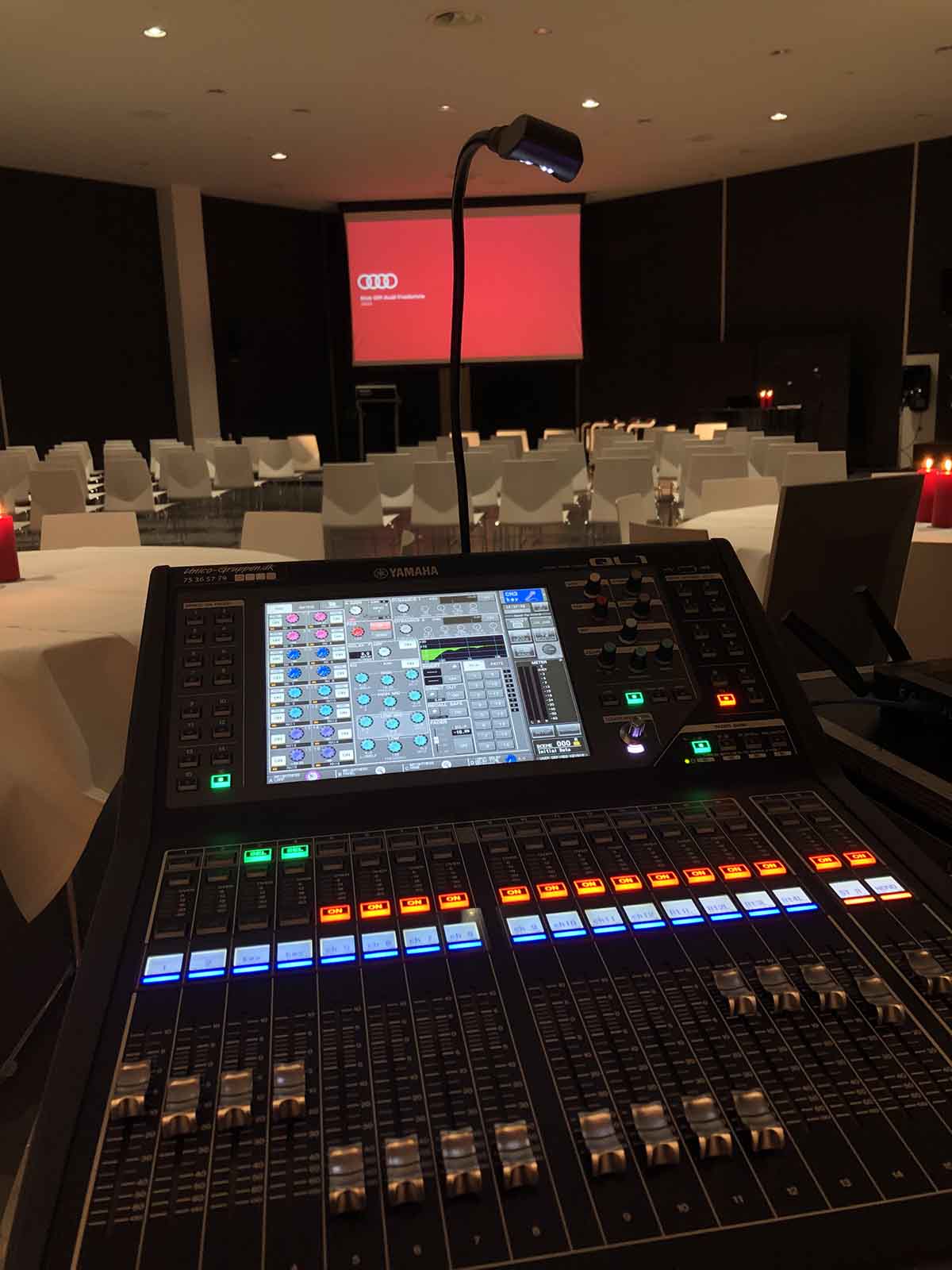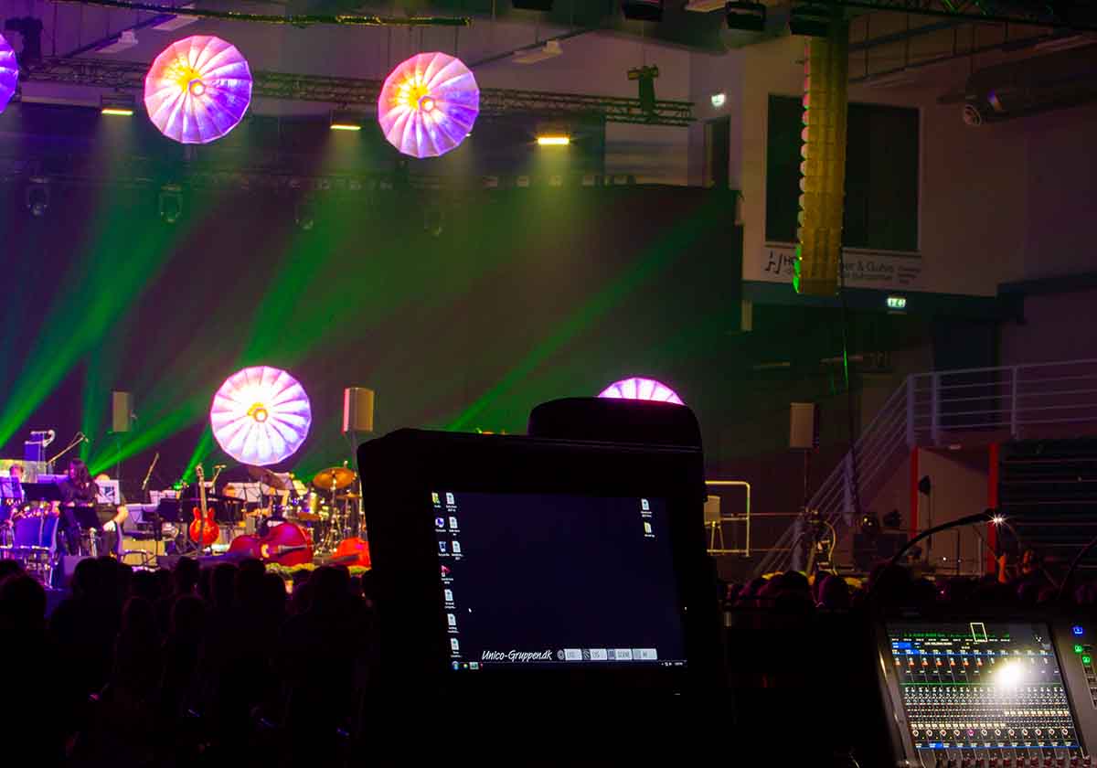 Det betyder, at vi har alt på hylderne til en komplet produktion. Det er lige fra mikrofoner og digitale mixerpulte til højttalere. Da det er sjældent at lyden står alene, kan du hos Unico Gruppen også leje scene, lys og AV.